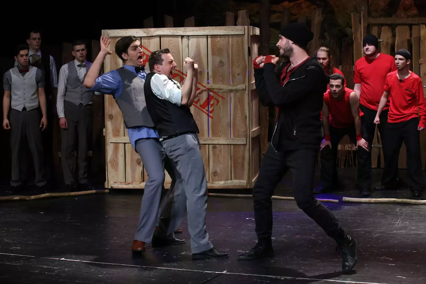 A drámai helyzetek így még keményebbek, melyeket tovább fokoznak a mai hangzású zenék és dalszövegek. Az előadásban döntő szerepet játszik a tárgyi világ akusztikus megszólaltatása, a színészek zenei-ritmikai kreativitása, a fiatalság ereje, humora, az eredeti mű katartikus üzenete.